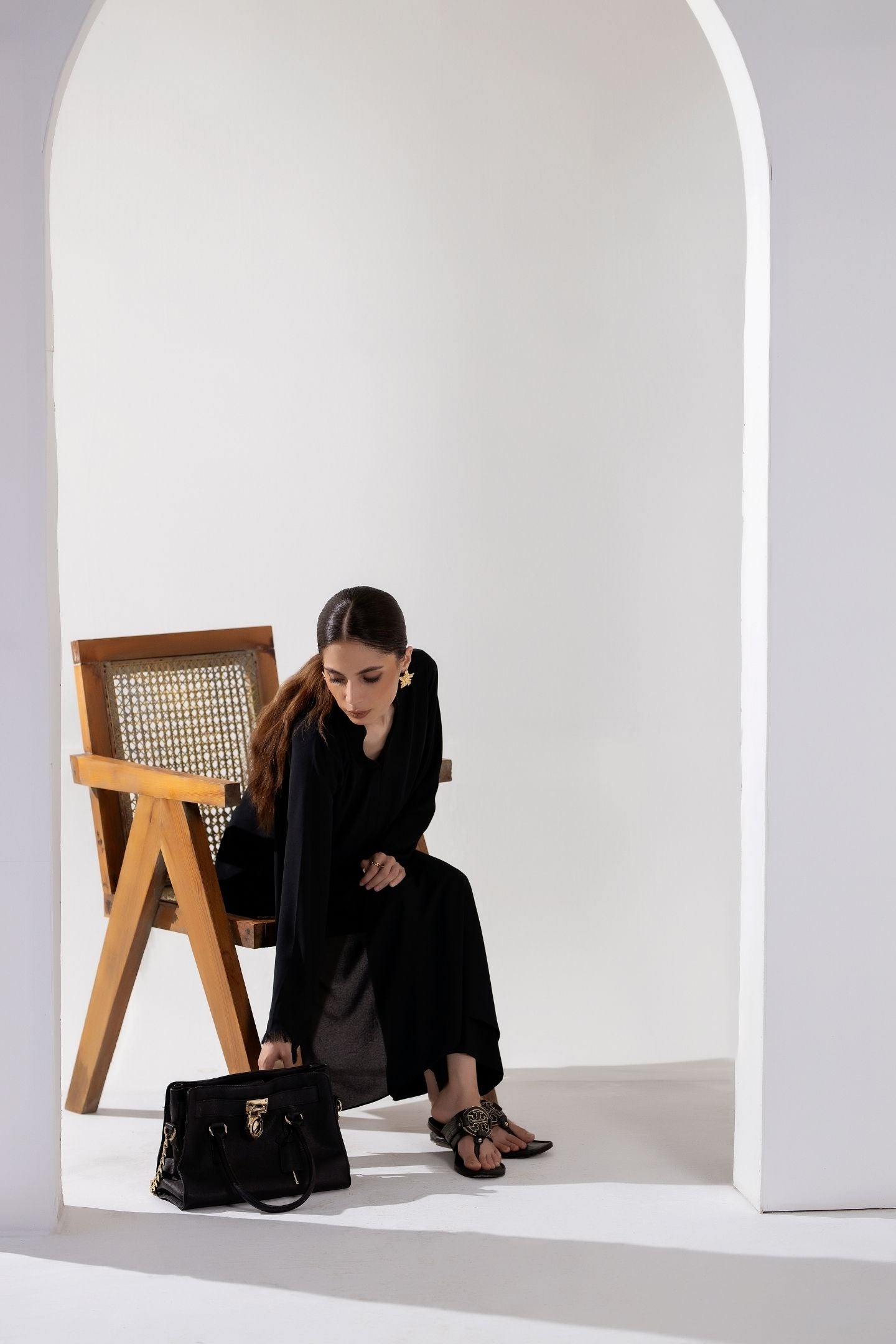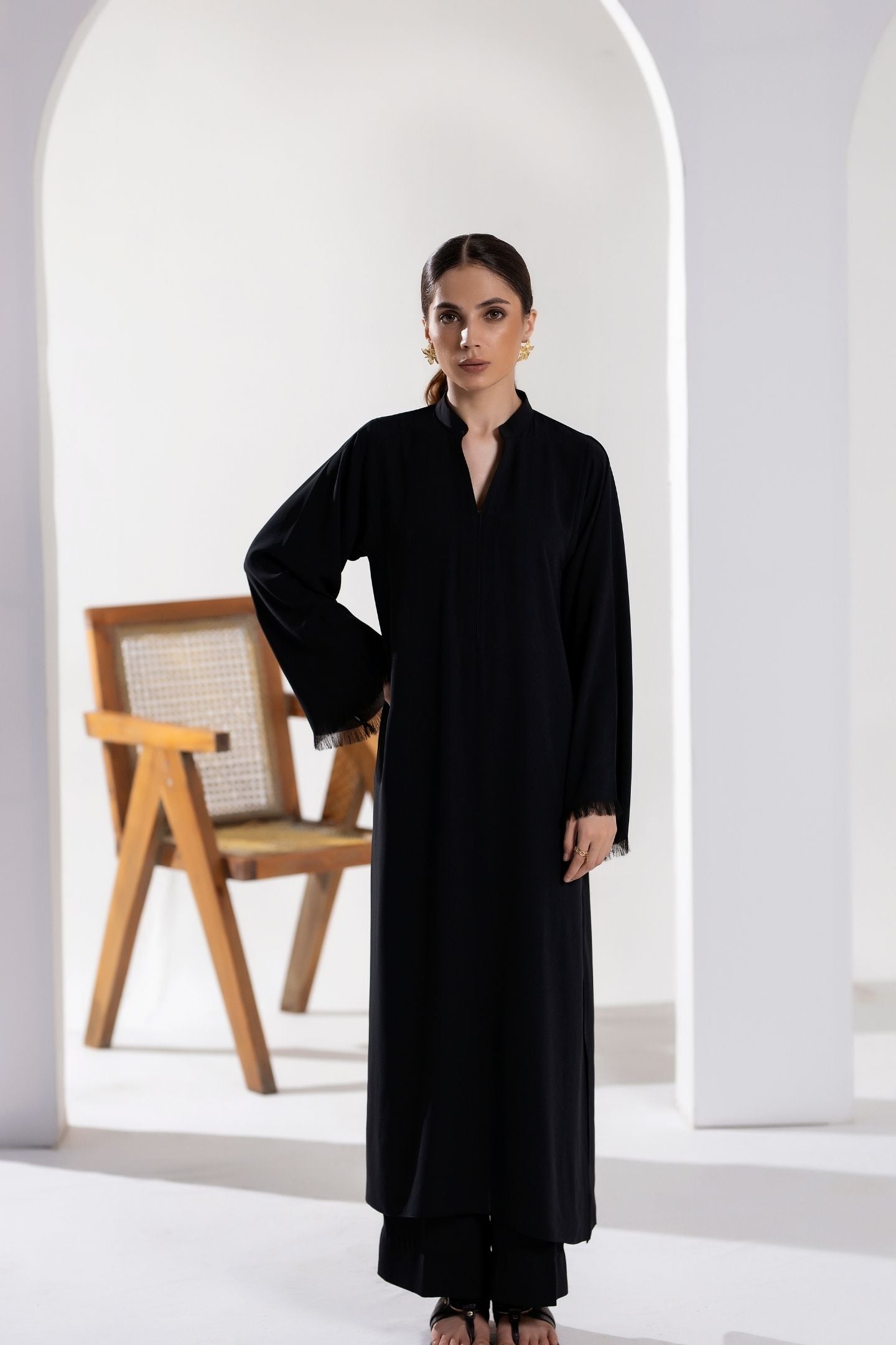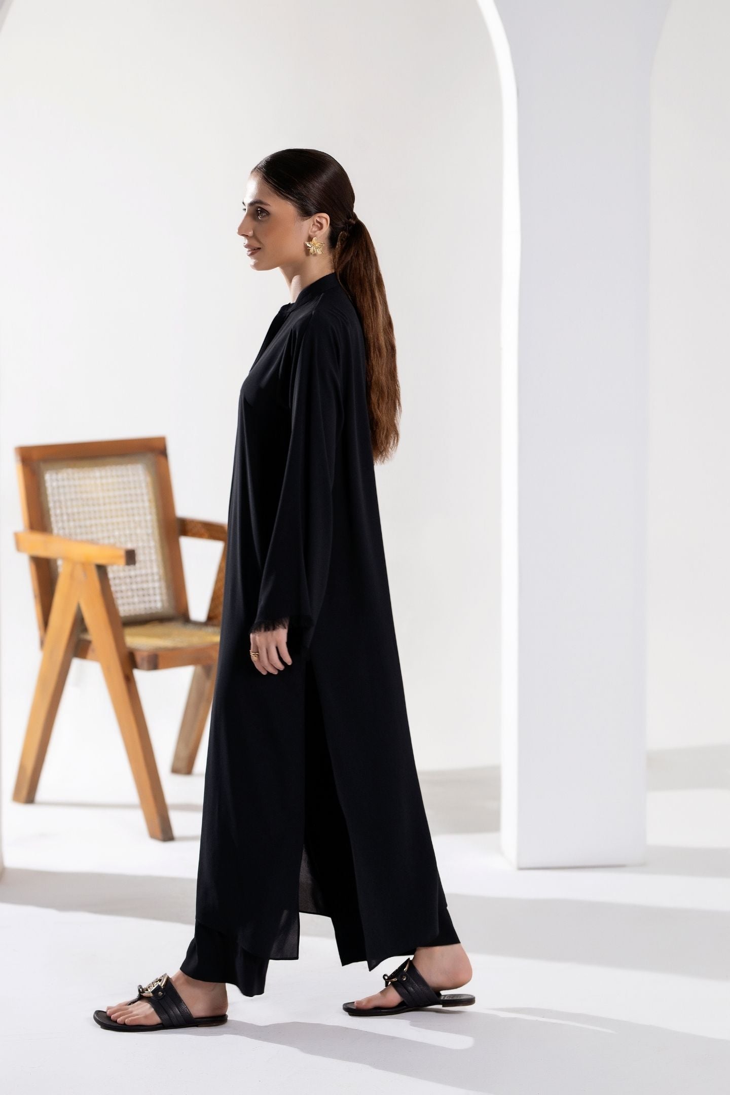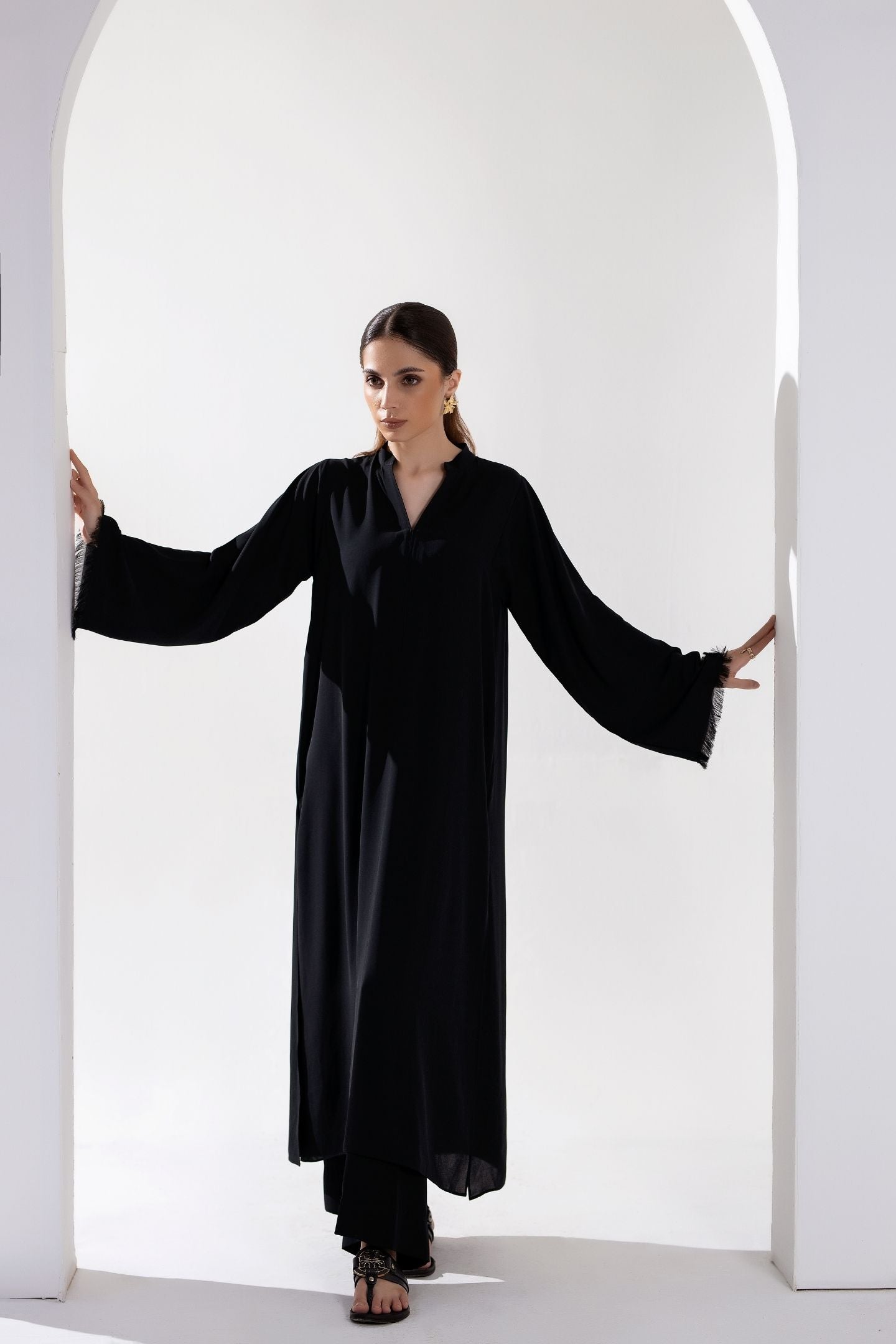 Embrace classic allure with our Black Fringe Coord, This black flow kurta features dramatic sleeves and a sleek silhouette—your go-to for evenings, formal affairs, or bold minimalist style.